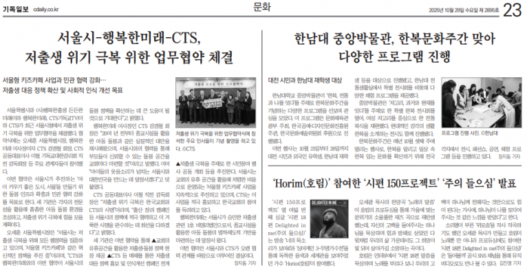 뮤직타임 [기사] ‘Horim(호림)’ 참여한 ‘시편 150프로젝트’ ‘주의 들으심’ 발표(기독일보)
